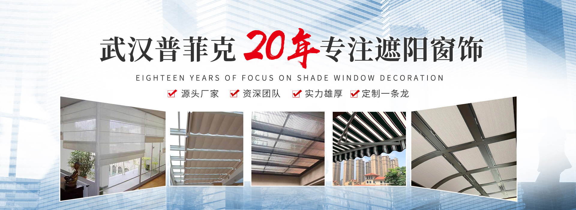 武漢普菲克建材有限公司是一家專業(yè)從事家居窗簾、電動窗簾、窗飾及各種工裝類遮陽產(chǎn)品研發(fā)、方案集成、安裝售后的供應(yīng)商。 2002年,公司成立于中國的水陸空交通樞紐——武漢。經(jīng)過多年的發(fā)展,公司的業(yè)務(wù)范圍... +more